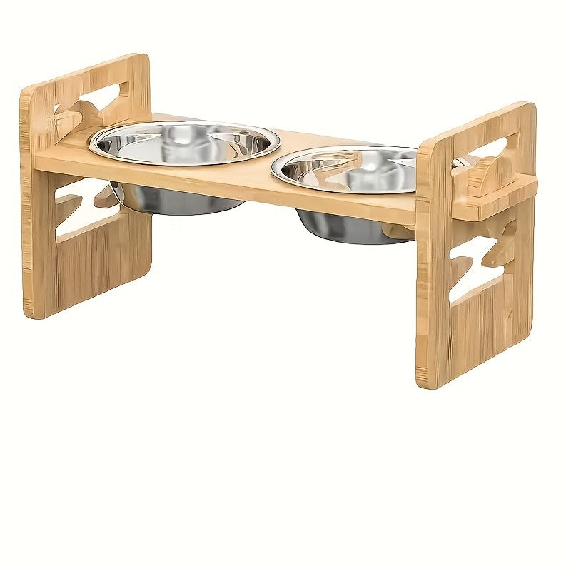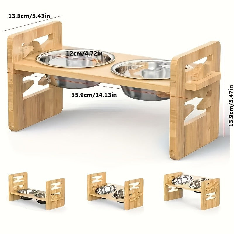 Tigela de bambu ajustável para animais de estimação